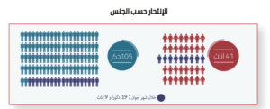 أما فيما يتعلق بالأنتحار، فقد أكد المرصد، أنه من خلال ما تم رصده تعتبر فئة الذكور من أكثر الفئات انتحارا إما الفئة المهيمنة فهي التي تتراوح أعمارها مابين 26 و 35 سنة تليها الفئة العمرية من 36 إلى 45 سنة، ويكون هذا سببها عادة هشاشة الوضعية المهنية أو البطالة أيضا المشاكل الأسرية والضغوطات والمسؤوليات التي يعيشها الفرد في المجتمع التونسي، تليها في درجة ثالثة الفئة العمرية الأقل من 15 سنة وتكون أسبابها غالبا العنف الأسري المسلط على الأطفال أيضا عمليات الاغتصاب والتحرش التي يتعرضون لها، ويمكن أحيانا أن يكون تقليدا لحالات انتحار أشخاص كبار في عائلاتهم وتحتل القيروان المرتبة الأولى في عدد حالات الانتحار.