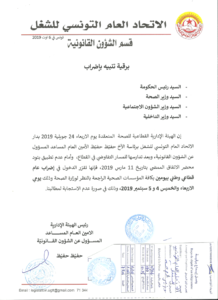 ووجه الاتحاد برقية الإضراب إلى رئيس الحكومة، وكل من وزراء الصحة والشؤون الاجتماعية والداخلية.