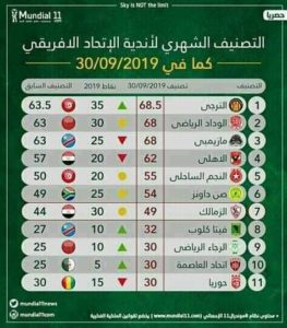 صدر التصنيف الشهري للاندية الافريقية في موفى شهر سبتمبر، وتصدّر الترجي الرياضي الترتيب العام للأندية الافريقية.