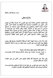 واوضح المكتب، أنه تمّت مراسلة الهيئة العليا المستقلة للانتخابات، نهاية الشهر الماضي، لتمكين القروي من إجراء حملته الانتخابية، عبر التنقل لكافة الولايات وإجراء حوارات مباشرة مع وسائل الإعلام.