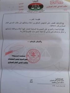 أمر المدعي العام العسكري في ليبيا، بالقبض على خليفة حفتر، وعون الفرجاني، وعبد الرزاق الناظوري، والشارف مسعود ضو، وذلك على خلفية شكوى تقدّم بها مواطن، مفادها اعتمادهم على عناصر جنسيتهم روسية في الحرب على طرابلس العاصمة.