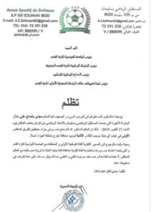 راسلت الهيئة المدير لفريق مستقبل سليمان، الادارة الوطنية للتحكيم اليوم الاثنين 28 أكتوبر، من خلال رسالة تظلّم ضدّ الحكم مجدي لحاج علي، الذي قاد مباراة فريقهم ضدّ اتحاد بن قردان في اطار الجولة السادسة لبطولة الرابطة الاولى.