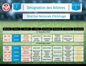 أعلنت الإدارة الوطنية للتحكيم اليوم الخميس 31 أكتوبر، على تعيينات الحكام الذين سيديرون مباريات الجولة السابعة للرابطة الأولى.