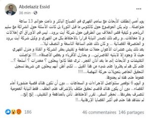 وقال عبد العزيز الصيد، في تدوينة له على موقع “فيسبوك”، أنّ جلسة الأبحاث مع سامي الفهري “بدأت في الصباح الباكر ليوم أمس، ودامت حوالي 13 ساعة متواصلة… ولم يكن الموضوع حول كاكتوس ما قبل الثورة، بل كانت الأسئلة حول الشراكة مع سليم الرياحي وكيفية فض الخلاف بين الطرفين حول شركة آيت برود” بالرغم من أنه “ليس في الأوراق أي إخلالات و لا مخالفات”.