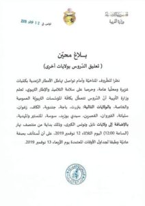 وستستأنف الدروس بداية من يوم غد الأربعاء 13 نوفمبر.