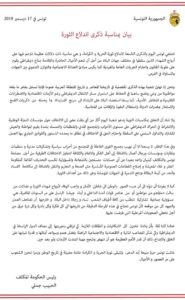 وهنأ الجملي الشعب التونسي، في بيان له اليوم، بمناسبة الذكرى التاسعة لانطلاق شرارة الثورة التونسية بمدينة سيدي بوزيد يوم 17 ديسمبر 2010، داعيا إلى الالتفاف حول مؤسسات الدولة الوطنية والانخراط في الحراك الديمقراطي على مستوى الأحزاب والمجتمع المدني.