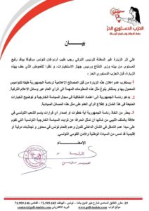 “الدستوري الحر” يحذّر رئيس الجمهورية من اتخاذ أي خطوة في علاقة بالملف الليبي