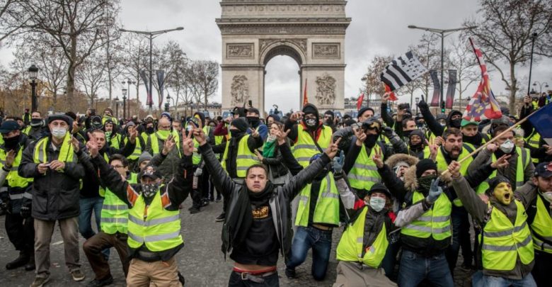وكانت مجموعات “السترات الصفراء” ومجموعات الاحتجاج على إصلاح نظام المعاشات التقاعدية، دعت عبر مواقع التواصل الاجتماعي هذه الليلة إلى احتجاجات تتزامن مع احتفالات رأس السنة في وسط العاصمة، في وقت ينتظر فيه الفرنسيون في كل عام كلمة متلفزة للرئيس الفرنسي تبث عبر الشاشات لتهنئتهم بالسنة الجديدة.