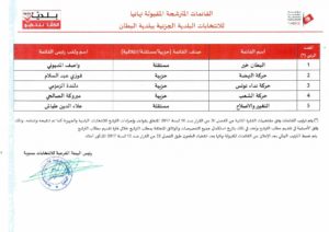 وستشمل هذه الانتخابات، 5 بلديات، وهي كل من بلديات “البطان” و”الدندان” من ولاية منوبة، وبلدية “رقادة” من ولاية القيروان، و”نفزة” من ولاية باجة، و”الثريات” من ولاية سوسة.
