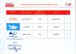 نشرت الهئة العليا المستقلة للانتخابات، اليوم الجمعة 3 ديسمبر 2019، القائمات المرشحة المقبولة نهائيا للانتخابات البلدية الجزئية يومي 25-26 جانفي 2020.