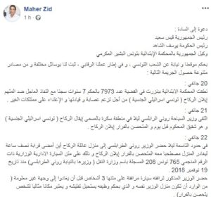 ماهر زيد النائب عن “ائتلاف الكرامة” يطالب قيس سعيّد ويوسف الشاهد بالتحقيق في ما يرتكبه روني الطرابلسي ضدّ أحكام القضاء