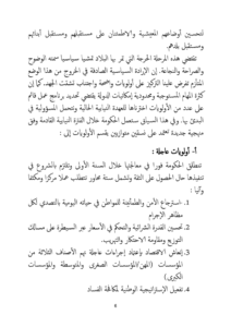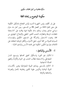 وتتضمن الوثيقة المبادئ والأسس التي ستقوم عليها الحكومة المقبلة، بالإضافة إلى المقاربة الحكومية في تسيير الفريق الحكومي الجديد، وأوليات المرحلة على المدى القريب والبعيد.