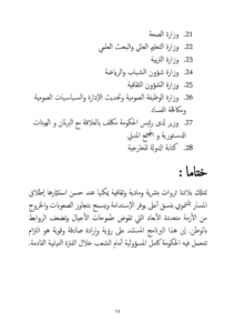 كما أظهرت الوثيقة المرجعية، هندسة الحكومة الجديدة، والتي من المنتظر أن تتكون من 28 وزارة.