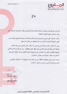 ولفتت حركة “مشروع تونس”، إلى أنها أكدت استعدادها للمساهمة إيجابيا في نقاش الأولويات الوطنيّة التي يجب أن تعمل عليها الحكومة المقبلة، وضرورة وضع أرضية حكم وإصلاحات واضحة تجتمع حولها أوسع القوى الوطنيّة الملتزمة بالعمل من أجل تحقيقها دون إقصاء أو تمييز.