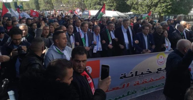 وعبرت المنظمات والأحزاب، خلال مشاركتها في مسيرة وطنية الداعمة للقضية الفلسطينية، عن رفضهم لمشروع الرئيس الأمريكي دونالد ترامب، “الذي يهدف إلى إسقاط حقّ العودة للاجئين الفلسطينيين، ومواصة اغتصاب القدس ليهبوها عاصمة للكيان المحتلّ”.