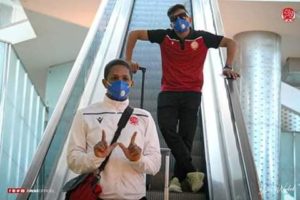 وحمل اللاعبون واقي خاص ضدّ فيروس ”كورونا”، فيما خضع جميعهم لوحدة القيس الحراري، التي ركزتها وزارة الصحة بالمطار.