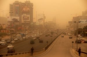 أدت العاصفة الرملية الكثيفة المسماه بـ”عاصفة التنين”، والتي ضربت وما تزال منطقة الشرق الأوسط، إلى مقتل طفلين في مصر وقطاع غزة، إضافة لإصابة العديد بجروح واختناقات بسبب الرياح الشديدة المغبرة، والتي أدت لتطاير أجسام حديدية ولوحات إعلانية وأشجار.
