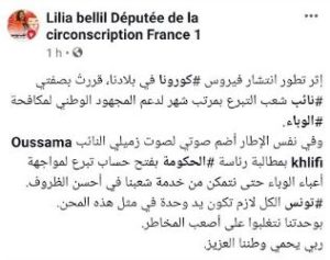 أعلن النائبان عن حزب “قلب تونس” في البرلمان، ليليا بالليل، والجديدي السبوعي، عن تبرعهما براتبهما الشهري لفائدة وزارة الصحة، في إطار التضامن معها لمواجهة فيروس “كورونا” المستجد.
