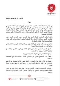 – تفعيل الحجر الصّحي العامّ على كامل البلاد في أقرب الآجال والتأكد من الجاهزيّة التامة لمجابهة هذا الوضع.