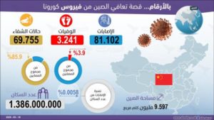وإذا أردنا استعراض تجربة الصين مع محاربة فيروس “كورونا” بالأرقام، سواء مساحة تفشّي الفيروس في البرّ الصيني، واحتوائه، ونسب الإصابات اليومية، وحالات التعافي، فإنها تأتي على الشكل التالي: