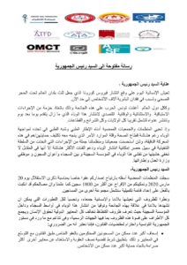 ووقع على الرسالة عدد من المنظمات والجمعيات على غرار، الرابطة التونسية للدفاع عن حقوق الإنسان، والاتحاد العام التونسي للشغل، والهيئة الوطنية للمحامين، وعمادة الأطباء التونسيين، والنقابة الوطنية للصحفيين التونسيين، والمنتدى التونسي للحقوق الاقتصادية والاجتماعية والجمعية التونسية للمحامين الشبان، والجمعية التونسية للنساء الديمقراطيات وجمعيات “بوصلة”.