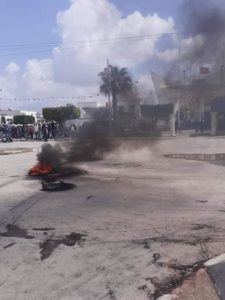 وكانت الوزارة، أعلنت في وقت سابق، أن المساعدات ستصرف يوم غد الثلاثاء، لكنّ مواطني الجهة، فوجئوا بتسريبها اليوم، الأمر الذي أثار غضبهم، فعمدوا إلى التعبير عن غضبهم عبر غلق الطريق، وإشعال العجلات المطاطية، ورفع شعارات ضدّ الحكومة، وفق شهود عيان..