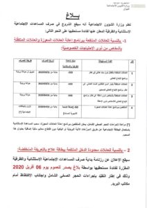 وزارة الشؤون الاجتماعية تبدأ يوم غد بصرف المساعدات المالية