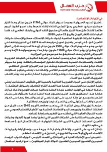 واقترح “حزب العمال”، إجراءات صحية وسياسية واقتصادية واجتماعية، لتجاوز أزمة انتشار فيروس “كورونا”، والتي اعتبر أنها “كفيلة بإنقاذ الشعب التونسي من ويلات الوباء المستجد وتعبيد الطريق له لبناء مستقبل أفضل”، وفق نص البلاغ.