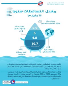 وقال الاتحاد، على صفحته الرسمية بموقع “فيسبوك”، أن 55 بالمائة من مياه التساقطت الأمطار أي ما يقارب 19 مليار متر مكعب من هذه المياه تتبخر وتتجه إلى البحر.