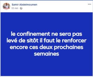 ودعا الدكتور عبد المؤمن، في تدوينة على حسابه بموقع التواصل الاجتماعي “فيسبوك”، اليوم الاثنين، إلى تشديد إجراءات الحجر الصحي العام في الأسبوعين القادمين.