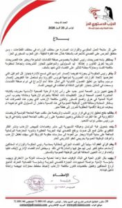 وأكد بيان الحزب، أن “الدستوري الحر” سيلجأ إلى القضاء الجزائي، للمطالبة بمحاسبة رئيس الحكومة والوزاراء المخالفين، لإسنادهم منافع للغير ليس لهم حق فيها، والمشاركة في ذلك، كما “سيطعن أمام القضاء الإداري لإيقاف تنفيذ وإلغاء قرارات التعيين المخالفة لقوانين الوظيفة العمومية والدستور”.