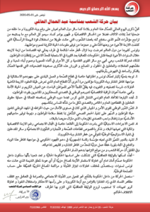 وقالت الحركة، في بلاغ لها اليوم الجمعة، بمناسبة ذكرى عيد الشغل، أنها ستتصدى “لمختلف محاولات ابتزاز الدّولة، ومراكمة المصالح الحزبيّة الضيّقة على حساب المصلحة الوطنيّة”.