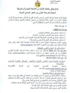 كما سيتم الإعلان عن موعد استئناف العمل بالمراكز التجارية الكبرى، يوم 14 ماي الجاري.