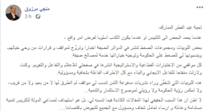 وقال منجي مرزوق في تدوينة له على موقع “فيسبوك”، اليوم الثلاثاء، “هذه اللوبيات التي تتخفّى وراء نشريات مدفوعة الثمن، تنسب لي مواقف لم أتطرق لها، لا من بعيد ولا من قريب، ولا تعكس رؤية الحكومة، ولا رؤيتي لموضوع الاستثمار والتنمية”.