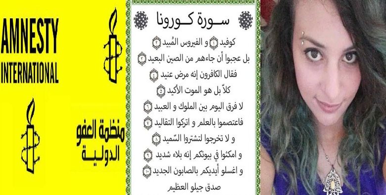 وكانت المدونة آمنة الشرقي، نشرت على موقع التواصل الاجتماعي “فيسبوك”، نصا ساخرا يقلد شكل آية قرآنية حول وباء فيروس “كوفيد-19”.
