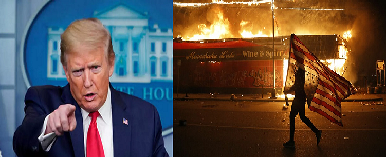 ووصف ترامب، في تصريح صحفي بالبيت الأبيض، عمليات النهب والتخريب التي تحصل خلال الاحتجاجات بـ “الإرهاب الداخلي”.