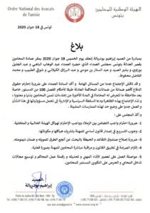 ندّدت الهيئة الوطنية لعمادة المحامين، “بتعرّض المحاماة في الفترة الأخيرة إلى اعتداءات تمسّ المحامين بدنيا ومعنويا”.
