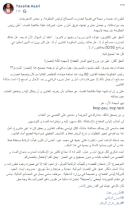 وانتقد ياسين العياري، في تدوينة له على موقع “فيسبوك”، اليوم الجمعة، دفاع بعض الأشخاص عن إلياس الفخفاخ، معتبرا أن من يصفّق لإعلان الفخفاخ بيع أسهمه في مجمع الشركات المساهم فيه، هو “مشارك في الجريمة ومشجع على التفصي من العقاب”.