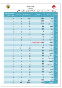 وأصبح بذلك العدد الجملي للمصابين بالفيروس، 1160 حالة مؤكدة، تتوزع بين 1023 حالة شفاء، و50 حالة وفاة، و87 حالة إصابة لا تزال حاملة للفيروس وهي بصدد المتابعة.