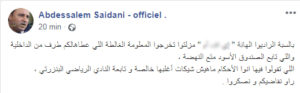هاجم عبد السلام السعيداني رئيس النادي الرياضي البنزرتي الإذاعة، التي قامت بنشر خبر زائف حول الأحكام الصادرة في حقه.