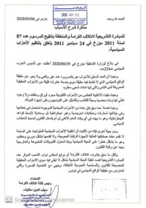 تقدّم “ائتلاف الكرامة” بمبادرة تشريعية إلى البرلمان، لتعديل المرسوم عدد 87 لسنة 2011، المتعلق بتنظيم الأحزاب السياسية.