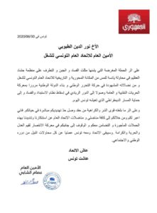 وأضاف “الجمهوري”، بأن اتحاد الشغل سيبقى “عصّيا عن كل محاولات النيل من دوره الوطني والاجتماعي”.