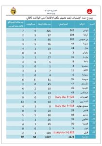 وأصبح بذلك العدد الجملي للمصابين بهذا الفيروس، 1178 حالة مؤكدة، تتوزع بين 1039 حالة شفاء و50 حالة وفاة، و89 حالة إصابة، لا تزال حاملة للفيروس وهي بصدد المتابعة.