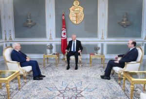 وجمع لقاء ثلاثي، أمس، الرئيس قيس سعيد، ورئيس البرلمان راشد الغنوشي، ورئيس الحكومة إلياس الفخفاخ، وتم التطرق إلى الأوضاع العامة بالبلاد وجملة من المسائل الأخری المتعلقة بسير المرافق العمومية للدولة.