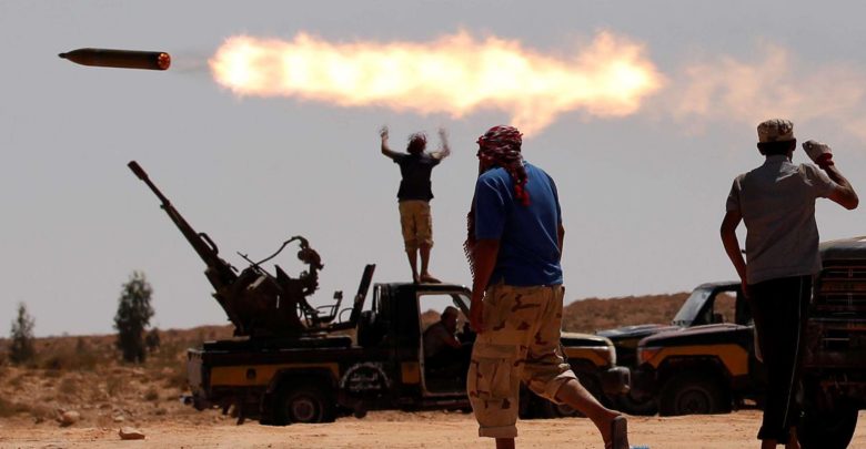 القتال بين معسكر حكومة الوفاق الوطني في طرابلس والمعترف بها من الأمم المتحدة، ومعكسر قوات شرق ليبيا بقيادة المارشال خليفة حفتر، يشمل بشكل خاص، الميليشيات القبلية والجهاديين والمرتزقة المسيرين من قبل عدة دول أجنبية: