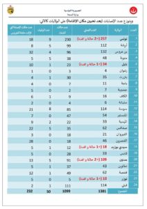 وأصبح بذلك العدد الجملي للمصابين بهذا الفيروس، 1381 حالة مؤكدة، تتوزع بين 1099 حالة شفاء و50 حالة وفاة، و232 حالة إصابة لا تزال حاملة للفيروس.