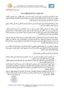 ودعت رابطة حقوق الانسان، “وزارة العدل والمجلس الأعلى للقضاء لتحديد وضبط السياسية الجزائية للدولة، وذلك بالإلتزام بتوجيه المشرع الذي ألغى مجلة الصحافة وما تضمنه من أحكام قمعية سالبة للحرية وعوضها بالمرسوم عدد 115 لسنة 2011، وضرورة تطبيقه عندما تتعلق الوقائع بالصحافة والصحافيين والأعمال الصحفية”.