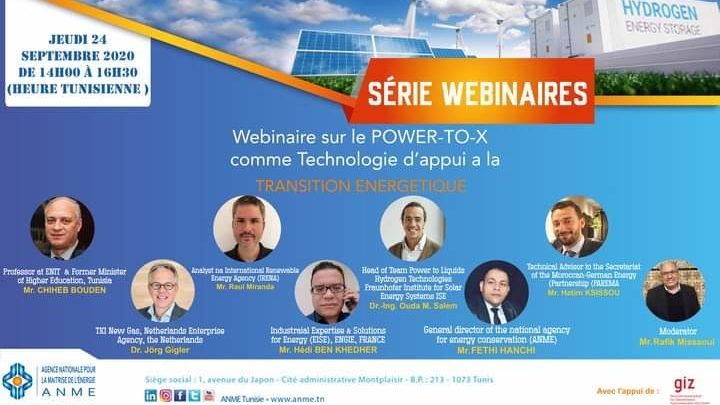 نظّمت الوكالة الوطنية للتحكّم في الطاقة، اليوم الخميس، أول ندوة عبر الإنترنت (ويبينار) في تونس حول تقنية (power-to-X)، باعتبارها تقنية داعمة للانتقال الطاقي.