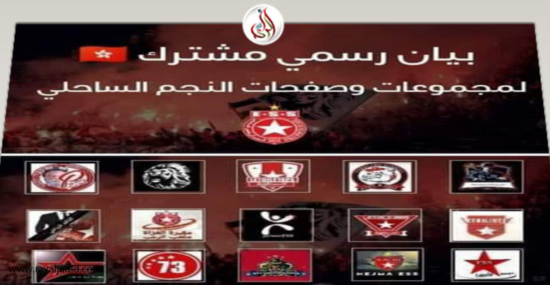 أصدرت مجموعات أحباء النجم الرياضي الساحلي، بيانا مشتركا يتطرق للوضع داخل فريق جوهرة الساحل، مطالبين رئيس النادي رضا شرف الدين بالتدخل العاجل، وتوضيح المسائل المتعلقة بسير إدارة النادي.