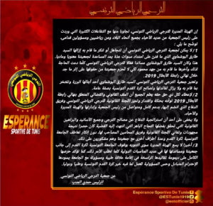 أصدرت الهيئة المديرة للترجي الرياضي التونسي، توضيح رسمي عبر صفحتها الرسمية في موقع التواصل الإجتماعي “فيسبوك”، بناءا على طلب من الأحباء وعديد المسؤولين القدامى بالنادي.